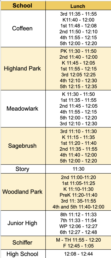 - Sheridan Junior High: 7:50 am – 8:10 am