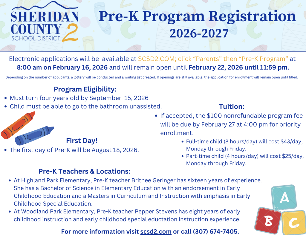 If you have any questions about this program, please contact Administrative Assistant Tara Keep at tara.keep@scsd2.com or 307.674.7405 ext 5000.